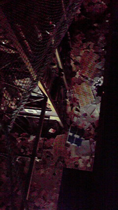 上の階から携帯で撮影したものです、正面から見ると瓦礫の山が3m~6mくらいあるように見えます