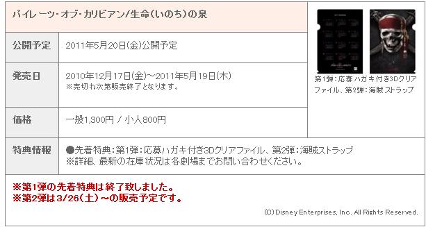 パイレーツ4の前売り特典・第2弾は3月26(土)からの予定らしい
