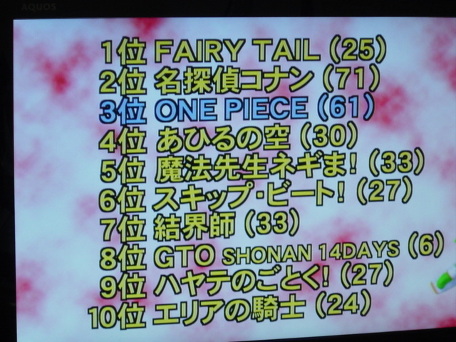 FAIRY TAILもやはり人気だから1位は納得できる