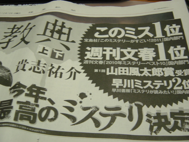 悪の教典が「このミステリーがすごい2011」1位を獲得