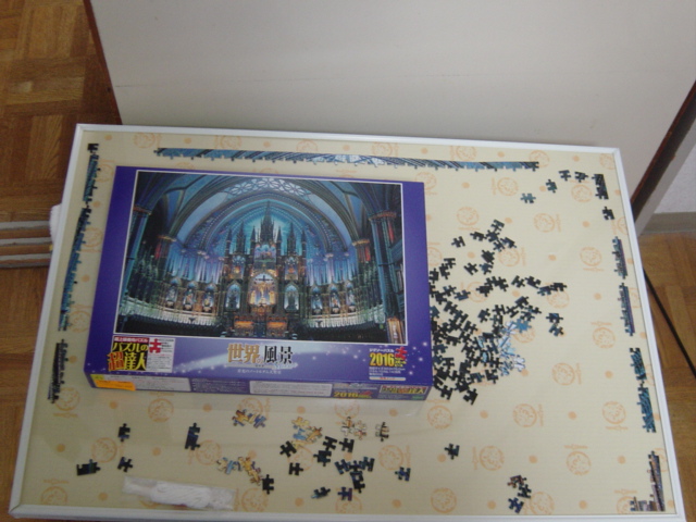 はじめに探し出した外枠ピースで組み合わせていたら、歴然と上端に2つほど足りないなと思って探していたらな