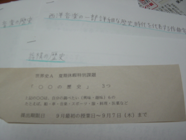 たしか俺は「将棋の歴史」「日本音楽と西洋音楽比較」「西洋音楽詳細な歴史」だった