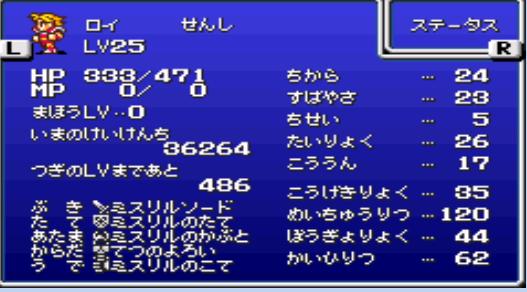 LVは25くらい次の町についたところで中断