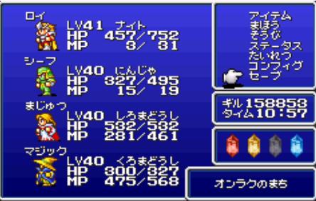 それぞれナイト、忍者、白魔道師、黒魔道師にクラスチェンジ